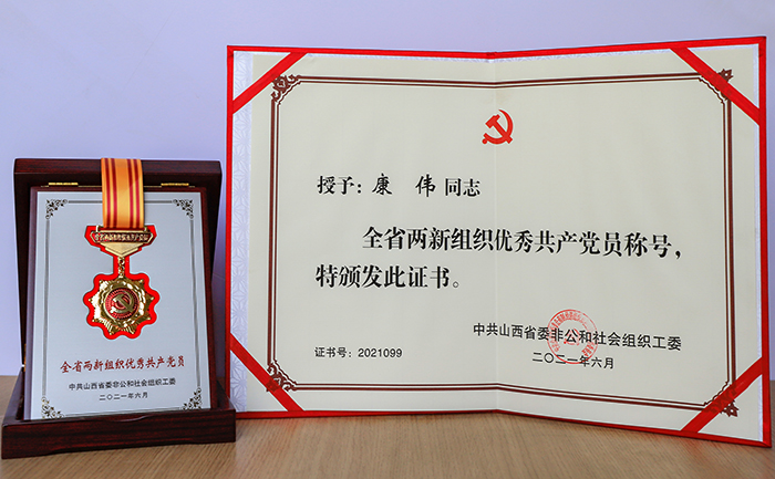董事長康偉榮獲“全省兩新組織優秀共產黨員”稱號